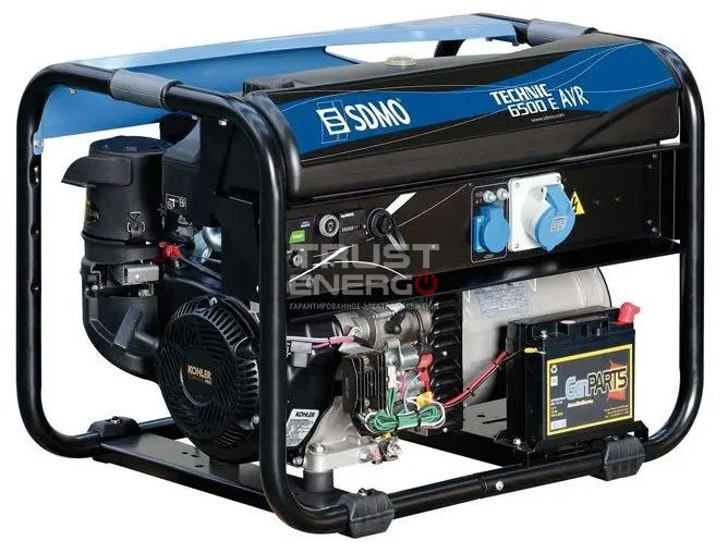 Бензиновый генератор SDMO TECHNIC 6500 E AVR номинальной мощностью 6 кВт с двигателем Kohler CH 440 E - отличный электроагрегат демонстрирующий уверенный приём нагрузки как резервный источник питания, так и основной.