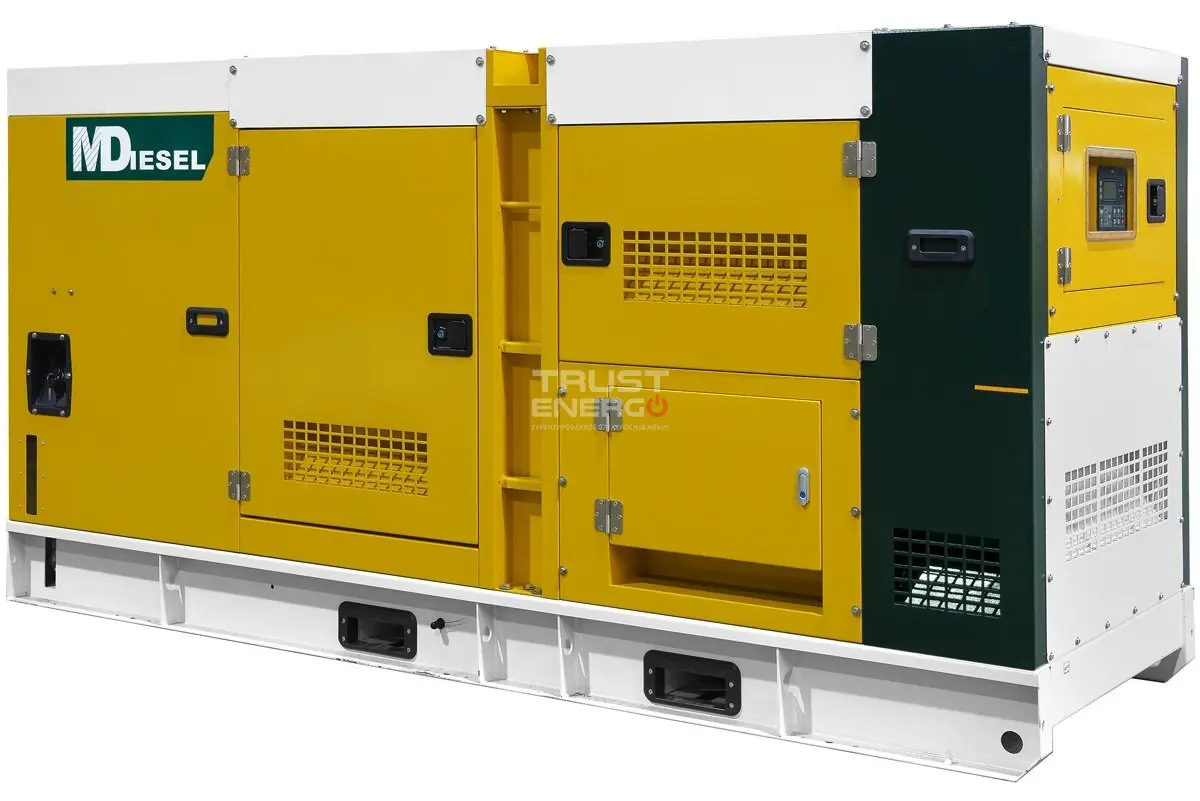 Дизельный генератор MitsuDiesel МД АД-150С-Т400-1РКМ29 в шумозащитном кожухе номинальной мощностью 150 кВт с двигателем Mitsudiesel - отличный дизельный электроагрегат демонстрирующий уверенный приём нагрузки как резервный источник питания, так и основной.